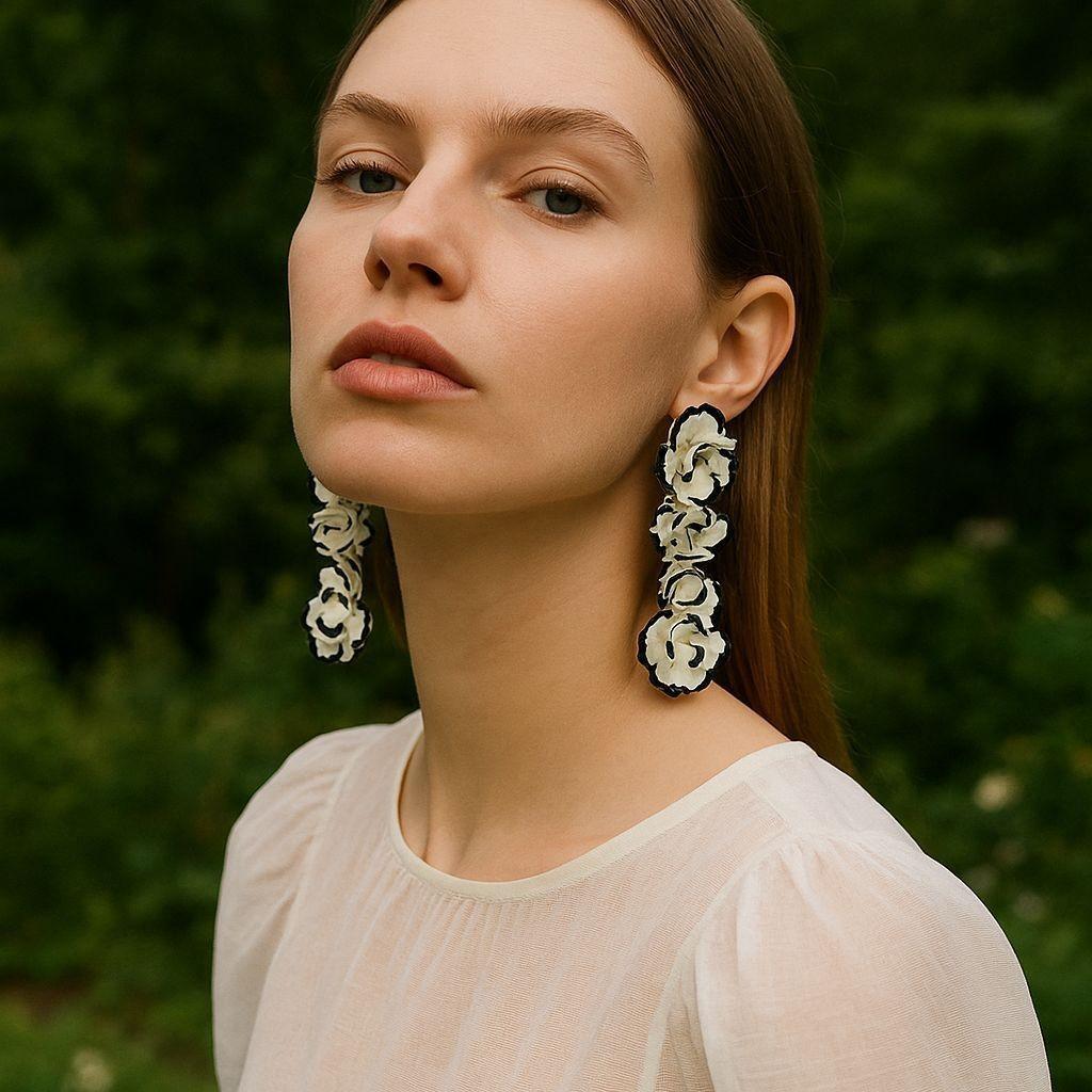 Bohemian fashion and elegance contrasting color metal flower pendant earrings light luxury versatile daily wear women