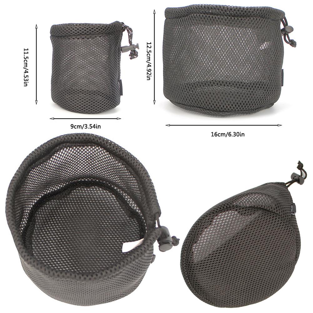 Black Nylon Mesh Bag Travel Stuff Sack Drawstring Bag Net Bag Storage Ditty Bag for Camping Cooker Stove Tableware Organizer