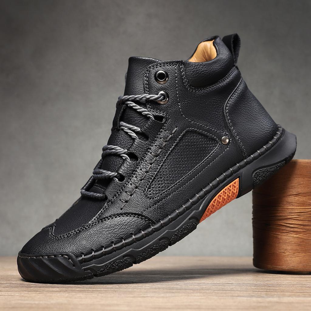Large Size Men's Shoes Leather Boots Men's Fashion Stitching Shoes Ankle Boots Flat Lace-Up Martin Boots Outdoor High Top Shoes