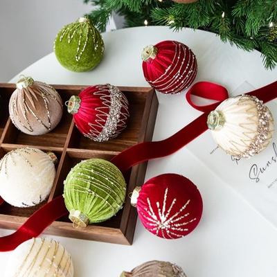 4pcs 8CM Velvet Christmas Balls Shatterproof Flocking Christmas Gifts Ball Reusable Glitter Xmas Tree Hanging Pendants
