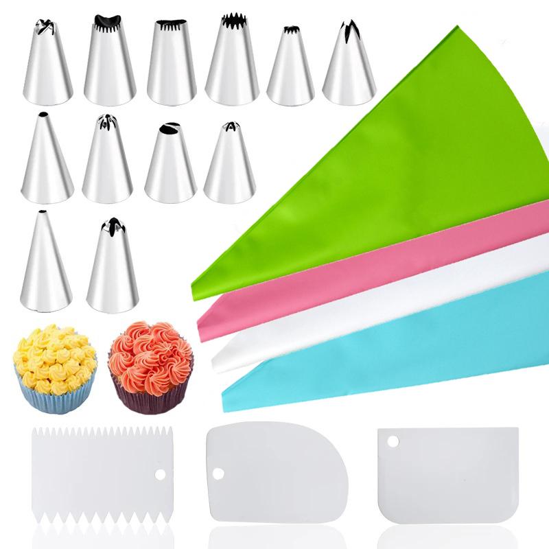 14/20Pcs Cake Piping Nozzle Set DIY Chocolate Pastry Baking Supplies Cake Icing Piping Cream Decorating Reusable Pastry Bags