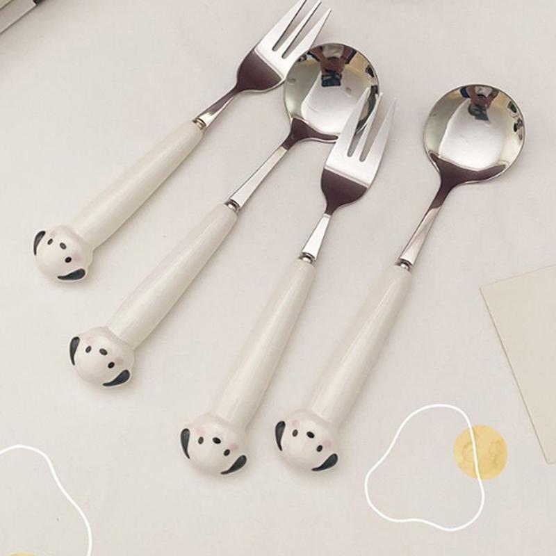 Přenosná sada lžic, vidliček a příborů - Kreslené štěně, prasátko, keramická bílá, cateringové potřeby, hůlky, sada nádobí