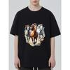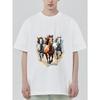 Men's T-Shirt Black Three Horses Running Print Casual Wear For Everyday Outfits And Outdoor Activities