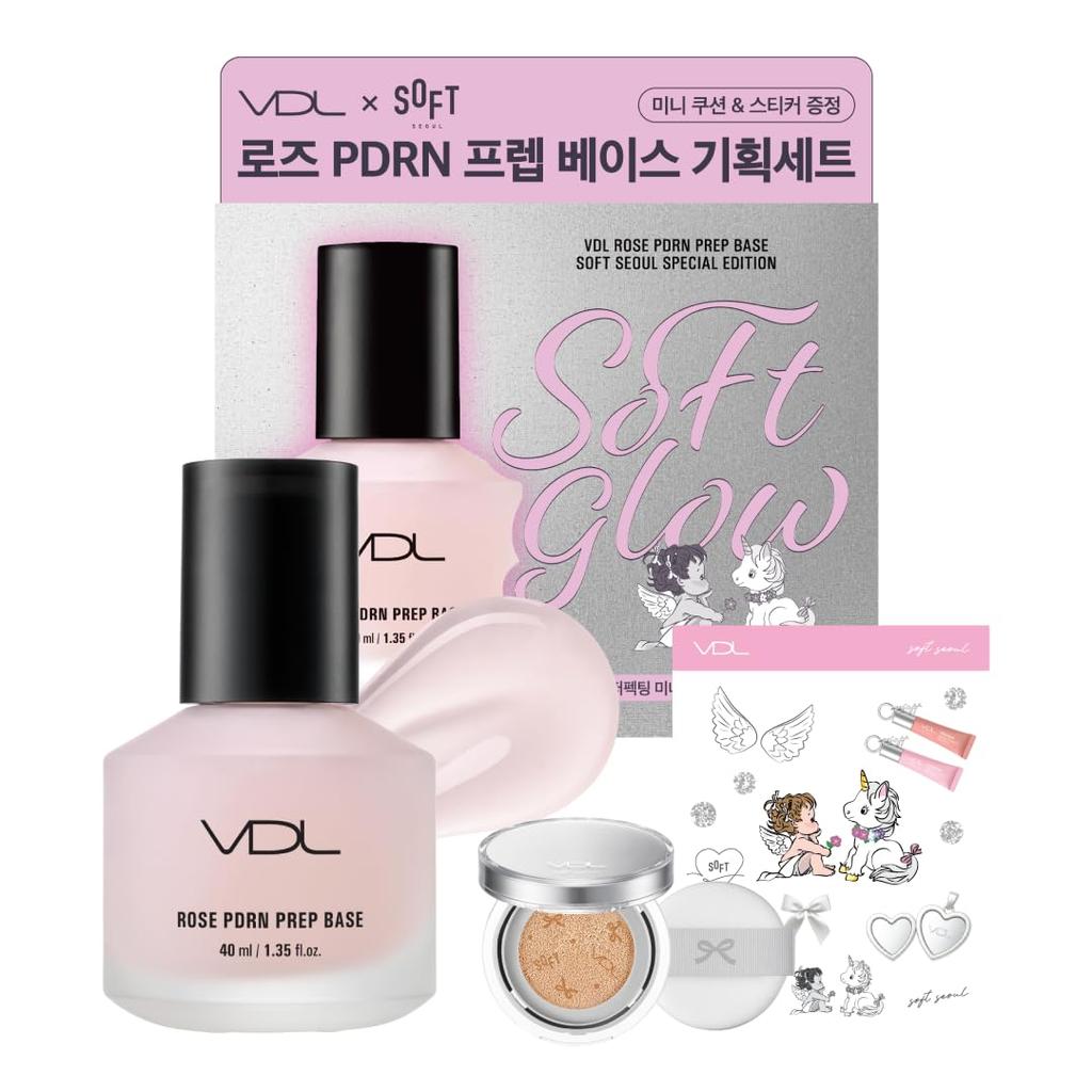 A special set from SOFTSEOUL, a fashion brand from Seoul, Korea, and VDL is here! This set includes an essence base formulated with rose-derived PDRN to improve the application of makeup, as well as plenty of bonus items. [For base makeup that won't break down or flake off due to dryness] VDL's special film former creates a smooth film on the skin. It adheres perfectly to the surface of your skin, enhancing the adhesion of your base makeup. This pre-base adheres tightly to your skin, keeping your base makeup in place.