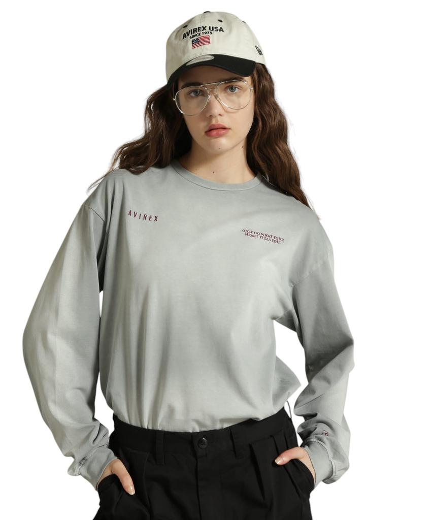 Avirex WEB LIMITED Belle LINE SPRAY L/S T-SHIRT, Women's, Light Gray, Size 023, Size Small, 783-5130701