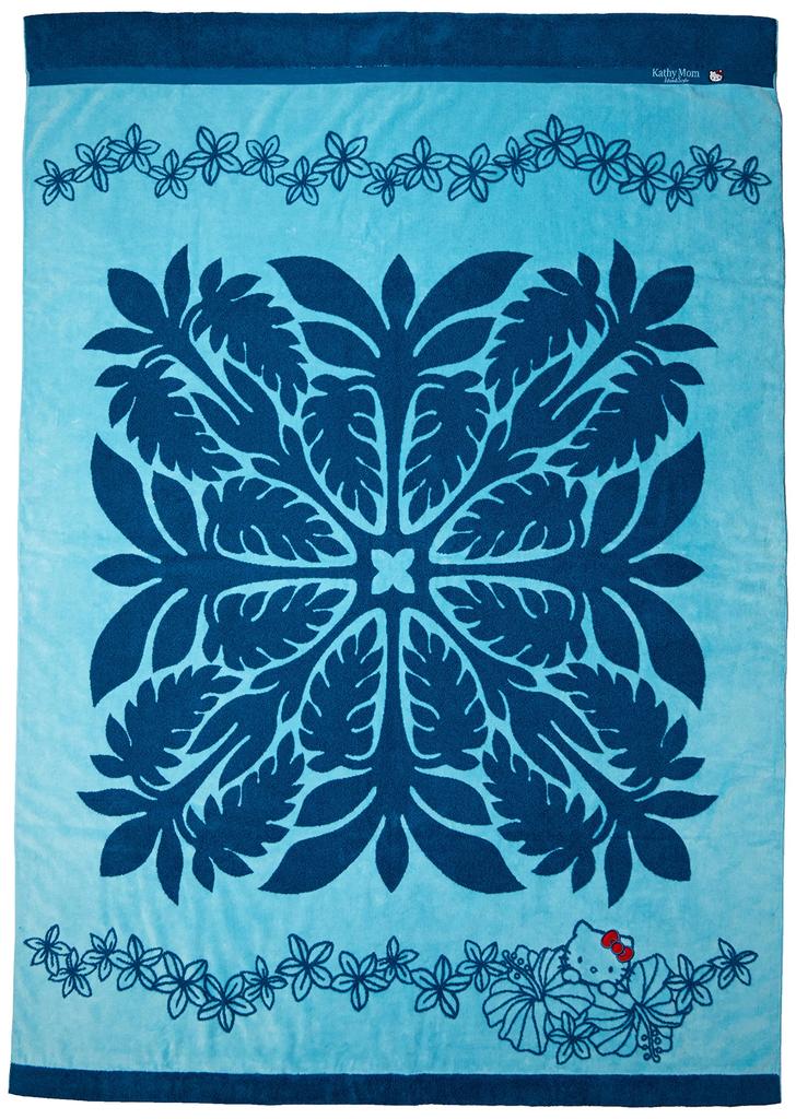 This towel blanket, a collaboration between "Cathy Mum," a lifestyle brand produced by Cathy Nakajima, and the ever-beloved character, Hello Kitty, evokes a resort-inspired atmosphere.