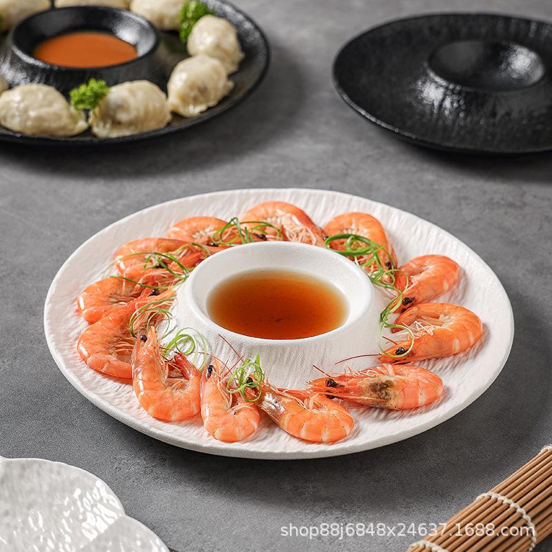 Kreativní keramické talíře na krevety s miskami na ocet, komerční talíře na knedlíčky a domácí lehce luxusní čínské nádobí