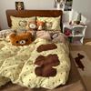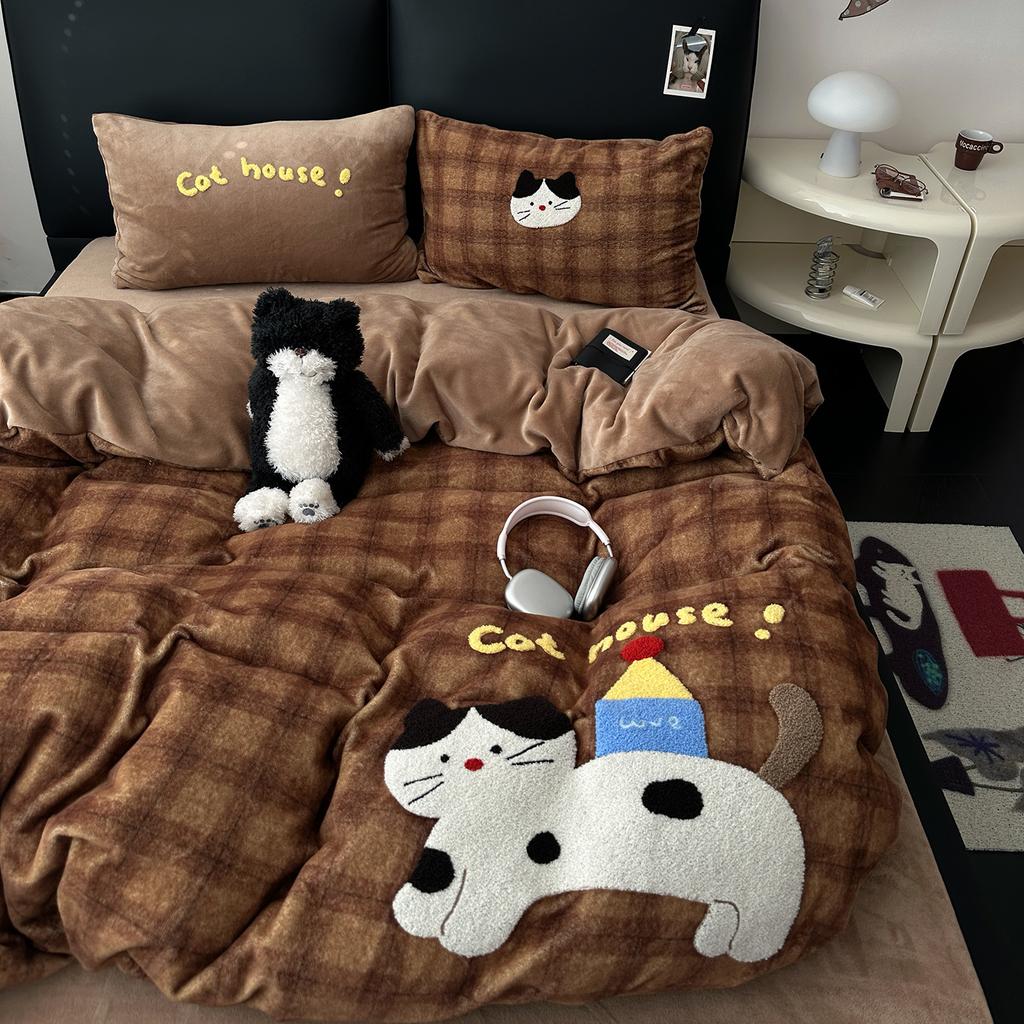 Cute Cat Embroidered Autumn Winter Warm Bedding Set Milk Velvet Thicken Warmth Duvet Cover Set with Sheet Quilt Cover Pillowcase