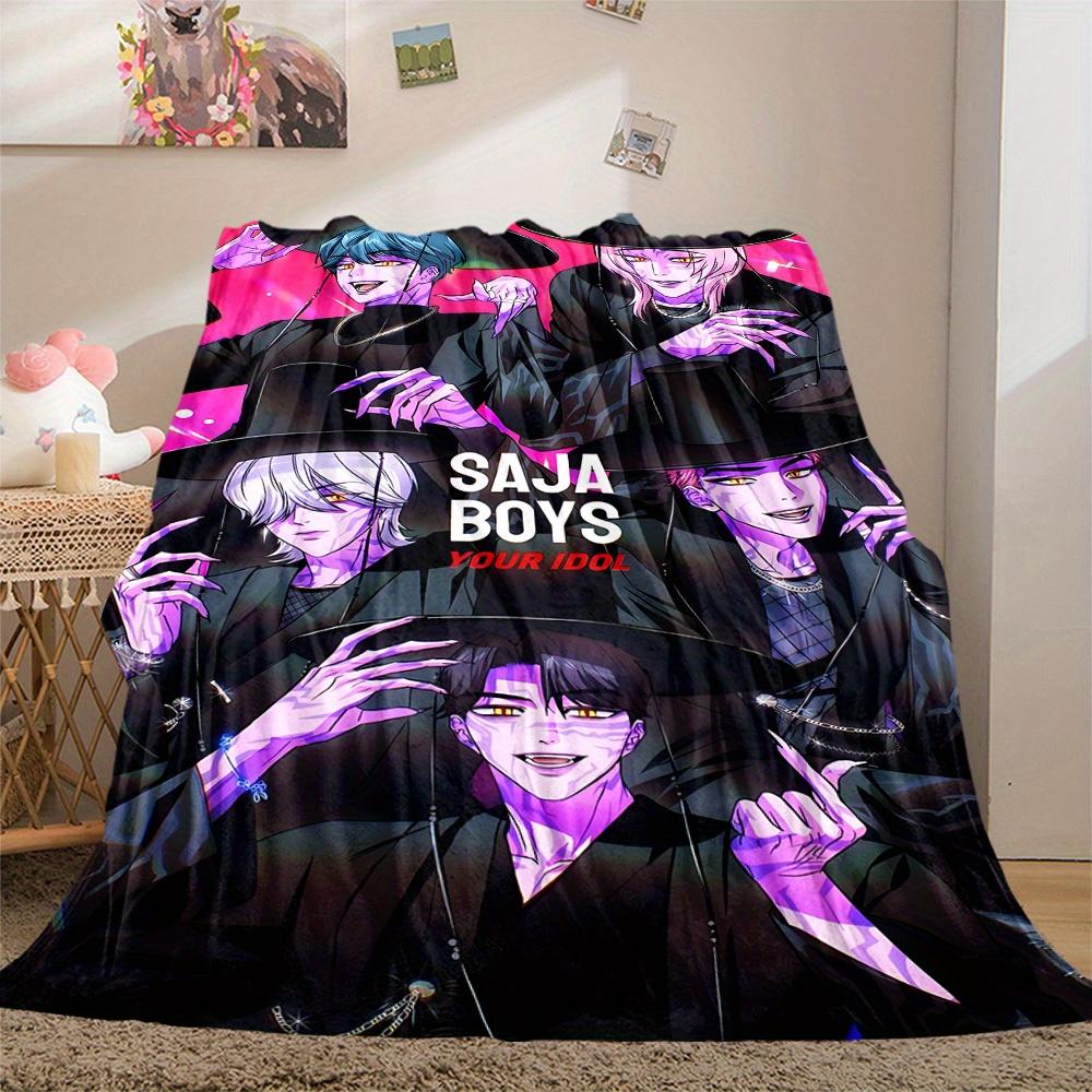 1Pc Saja Boys Print Flannel Blanket, Comfortable for All Seasons, Home Decor, Warmth and Comfort, Perfect for Christmas Gifts821100