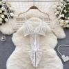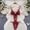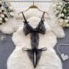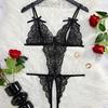 Mesh Hollow Women Lingerie Deep V Neck Lace Sling Nightwear Sweet Lace Bow Bodysuit Gifts