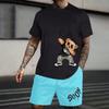 Men's Fashion 3D Teddy Bear Printed T-shirt Shorts 2-piece Set