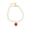 Pet pearl necklace, heart, crystal pendant, cat collar, puppy, teddy bear, cute neck decoration, cat gift, dog gift