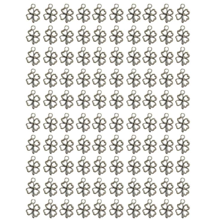 Balení 100 komponentů pro šperky se čtyřlístkem Přívěsek na náhrdelník Šperkařská doplňková texturovaná slitina Přívěsek pro jedinečné šperky