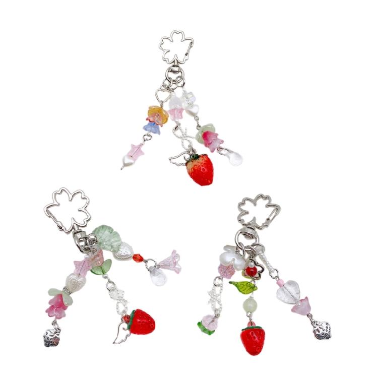 Lovely Strawberry Flower Keychain Pendant Backpack Decoration Charm Jewelry