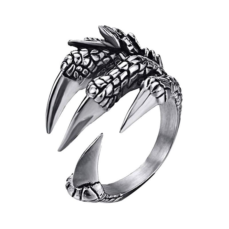 Vintage Punk Titanium Steel Eagle Dragon Claw Ring Gothic Halloween Jewelry for Men Open Rock Animal Skull Ring