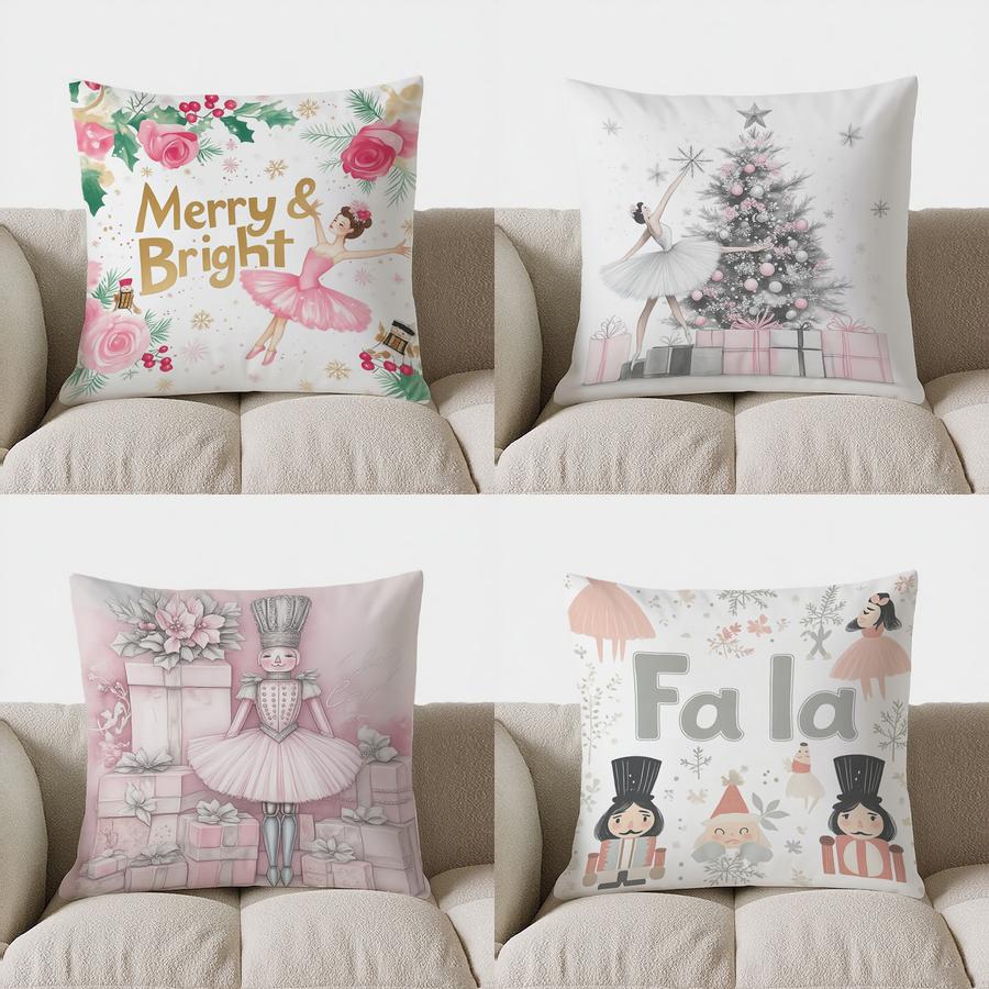 Home Decor Merry & Bright Ballet Girl Christmas Pillow Pattern Cushion Cover Suitable For Sofa Bedroom Car Pillow Cover