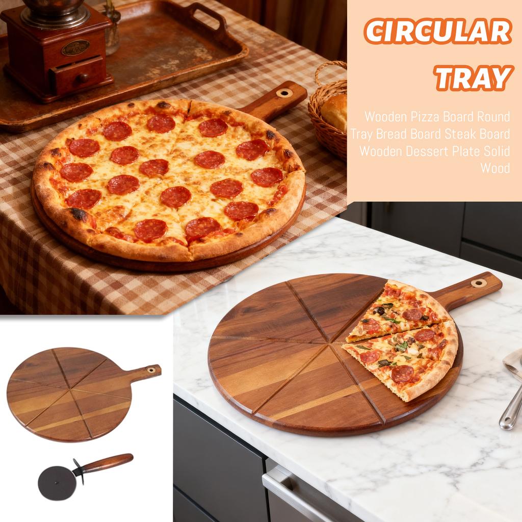 Wooden Pizza Board Round Tray Bread Board Steak Board Wooden Dessert Plate Wood