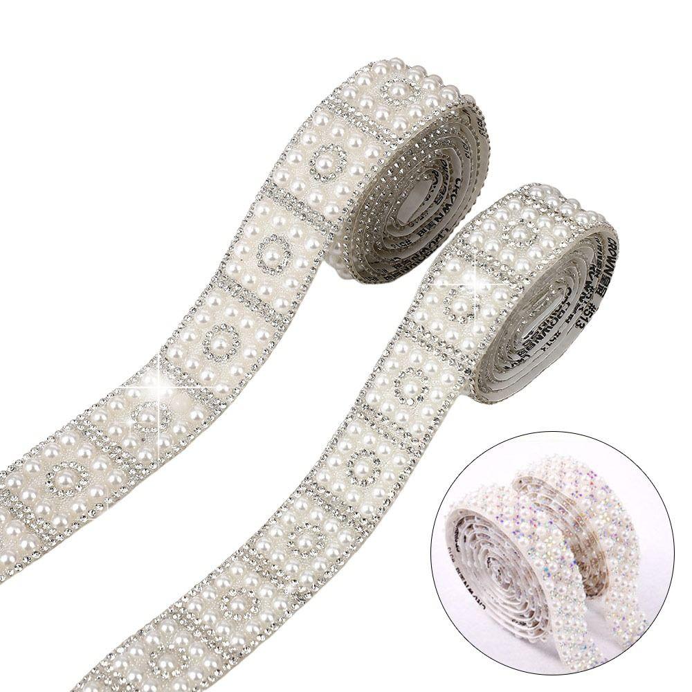 1 Yard Sewing Accessories Self-Adhesive Rhinestone Tape DIY Pearl Chain Wedding Dress