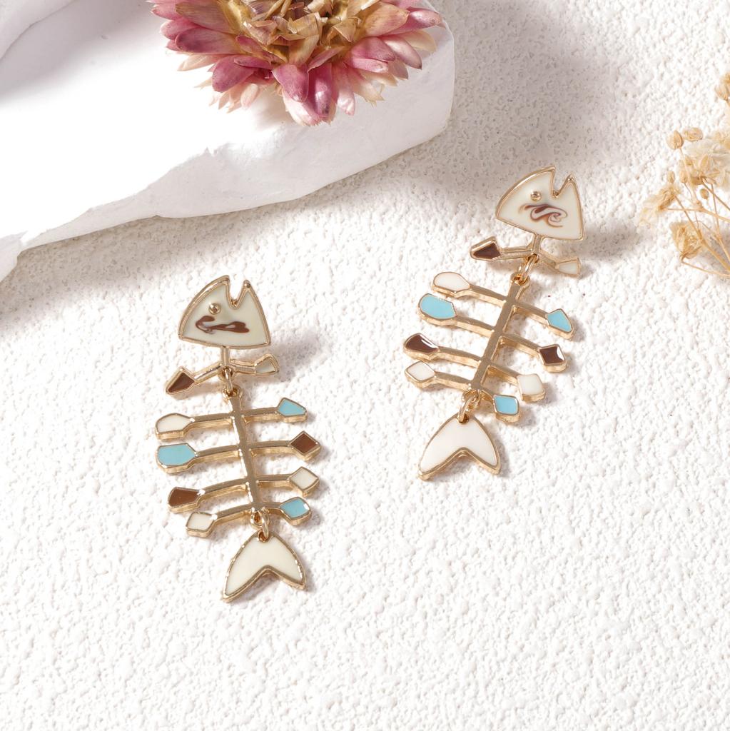 Ocean vacation style unique personality dripping alloy fish skeleton earrings niche versatile fashion simple women's models