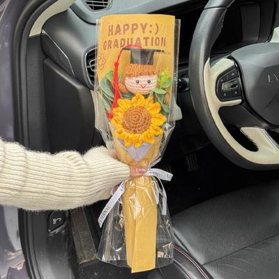 Home Decor Crochet Graduation Bouquet Cute Bear Crochet Sunflower Bouquet Doctoral Doll Bouquet