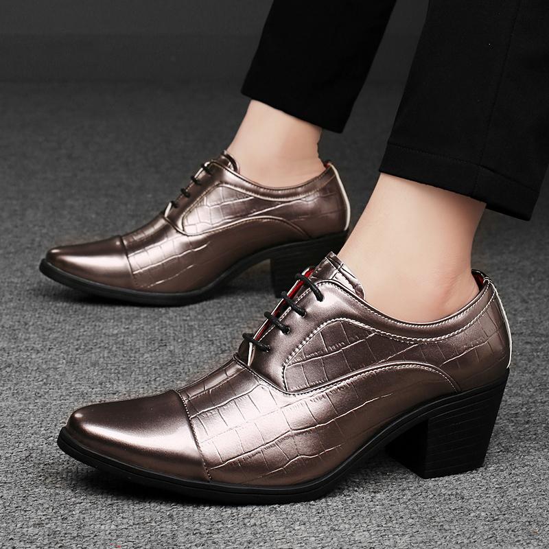Men High Heels Silver Derby Wedding Dress Dance Business Gold Elevator Shoes Height Increase Tuxedo Shoes Plus Size