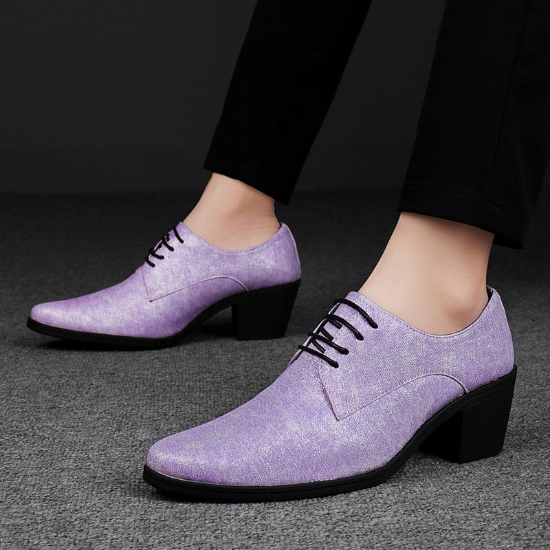 Men High Heels Silver Derby Purple Wedding Dress Dance Business White Elevator Shoes Height Increase Gold Tuxedo Shoes Plus Size