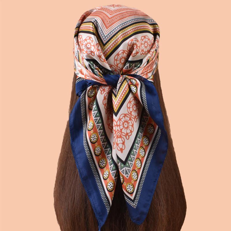 High Quality Summer Hijab Scarf Women Silk Imitation Neckerchief Hair Bands Foulard Woman Shawls Wraps Ribbon Square Bandanas