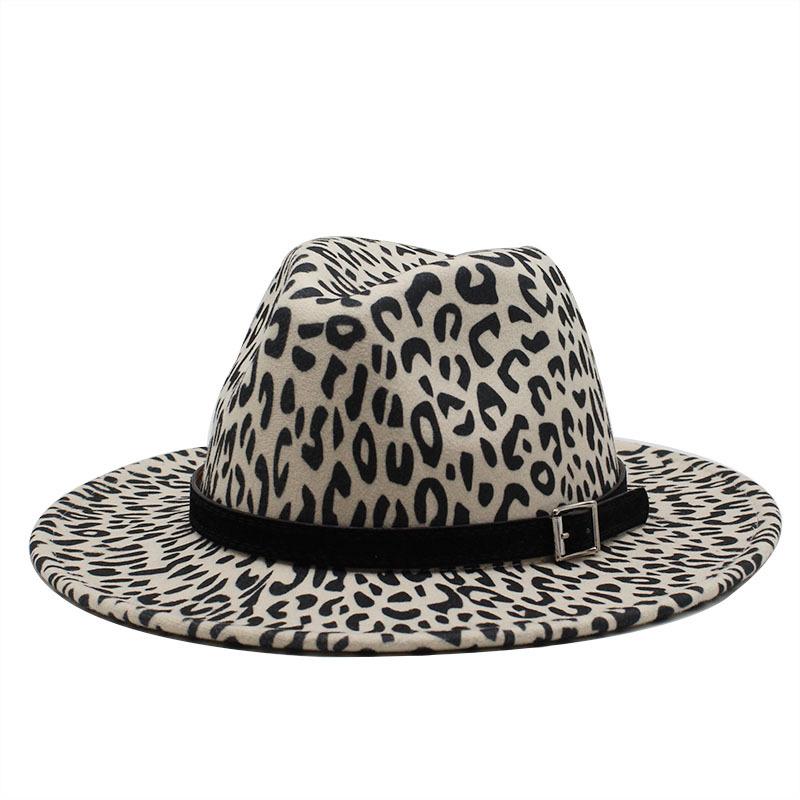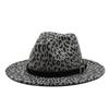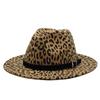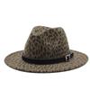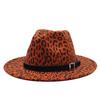British Style Male And Female Leopard Print Jazz Woolen Hat Big Eave Hat Top Hat