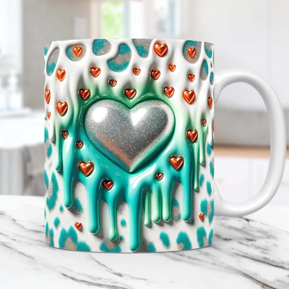 3D Love Heart Shape Valentine's Day Ceramic Coffee Mug Tea Cup