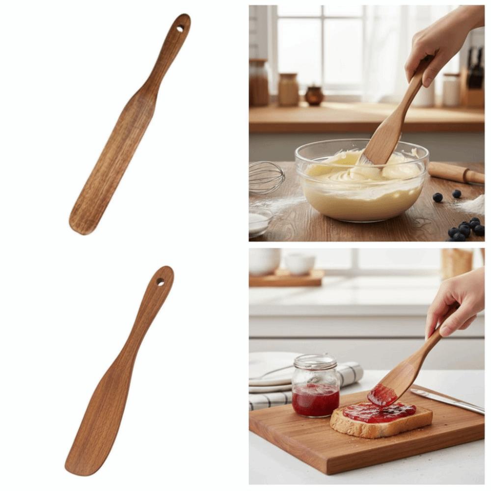--Multifunkční design pro všestranné použití:Škrabka má dobře tvarované dřevěné tělo, které vyvažuje flexibilitu a robustnost.. Může bez námahy seškrabovat mísy, míchat těsta, roztírat omáčky nebo zvedat jemné potraviny bez poškrábání nepřilnavého nádobí.. Jeho hrany jsou jemně leštěné, aby se zabránilo ostrosti, která by mohla poškodit povrchy.. Slouží jako praktický nástroj pro pečení, vaření a přípravu jídla.