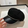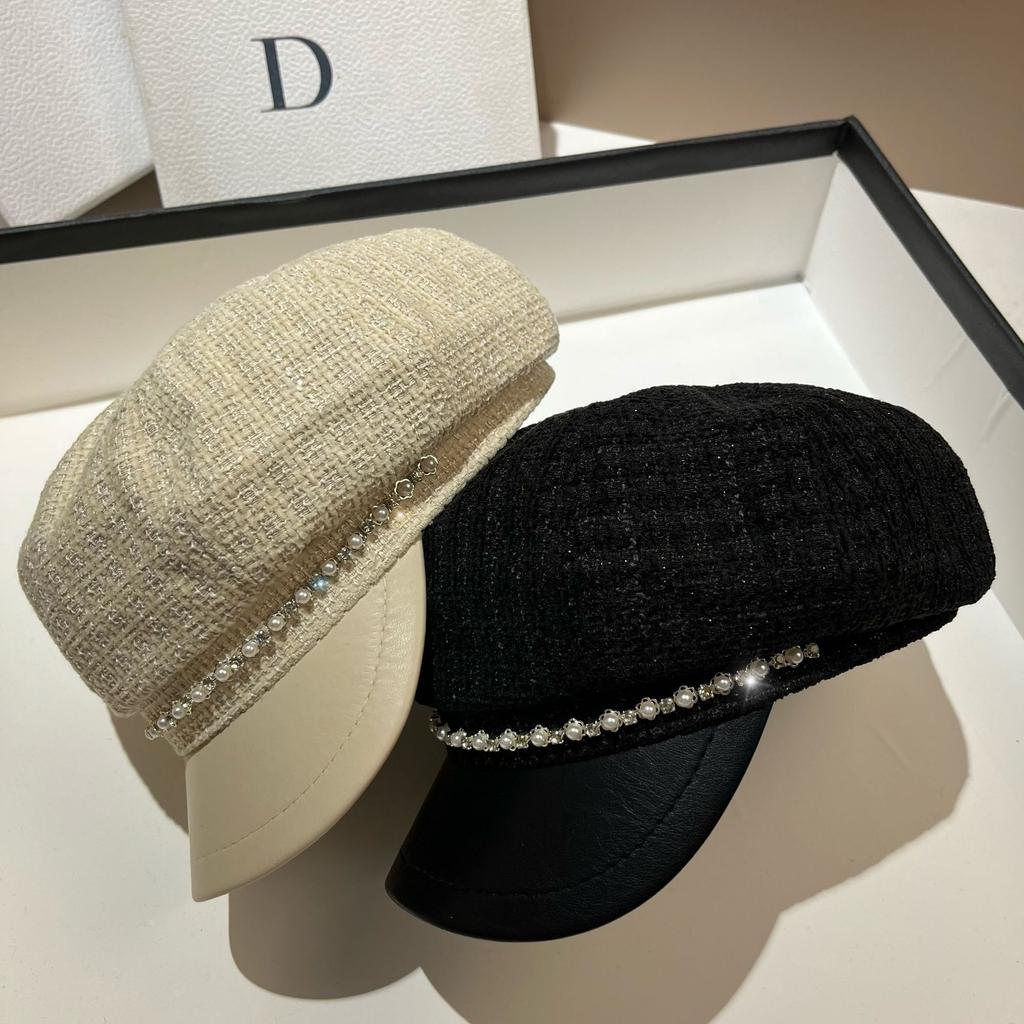 Dongdaemun Tail Order High Quality Fine Flash Small Fragrant Wind Octagonal Hat Spring And Autumn Versatile Rhinestone Rough Tweed Newsboy Hat Girl
