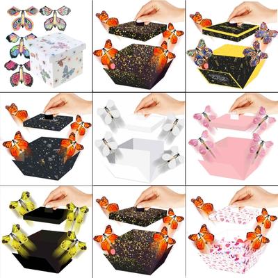 Magická motýlí dárková krabička k narozeninám Stylové barevné létající motýlí výbuchové krabičkové dekorace