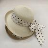 French Retro Straw Hat Elegant Hepburn Polka Dot Bow Sun Hat Women'S Summer Seaside Vacation Beach Sun Hat