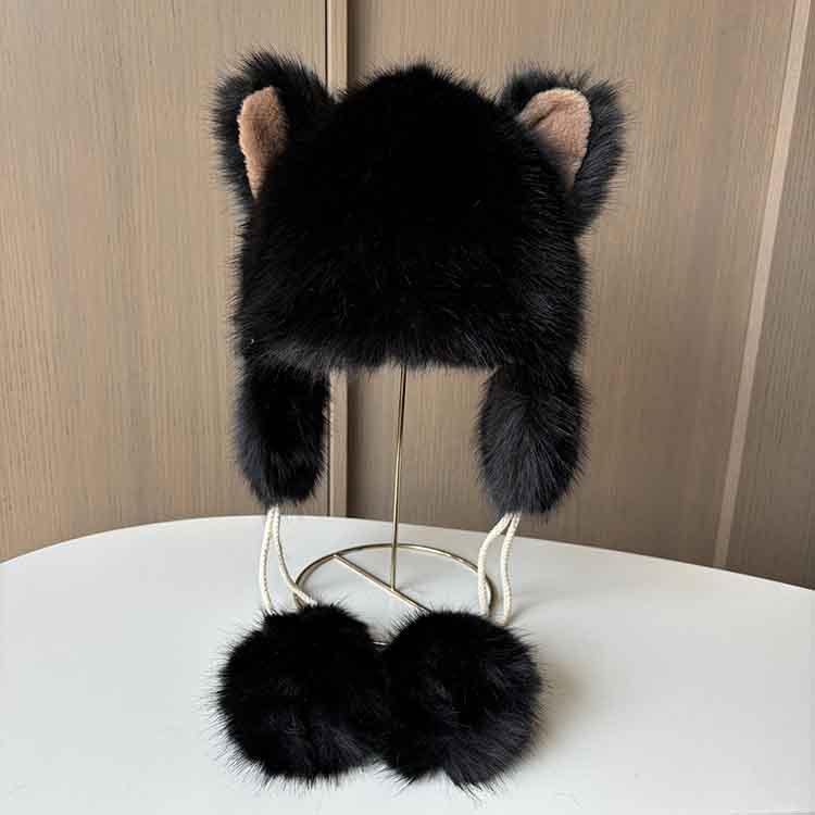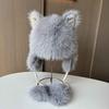 Ladies Cute Fox Ears Lei Feng Hat Winter Thickened Hanging Ball Ear Hat Student Travel Warm Plush Hat
