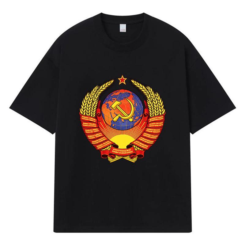 2026 Hammer And Sickle Emblem Printed Graphic Y2k Harajuku Streetwear 100% Cotton T Shirt Casual Oversized Summer Men T-shirt