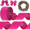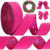 Winter Hot Pink Velvet Wired Edge Ribbon 2.5 Inch 20 Yards Double Sided Christmas Glitter Craft Ribbon for Xmas Tree Bow Wreath Gift Wrap Holiday
