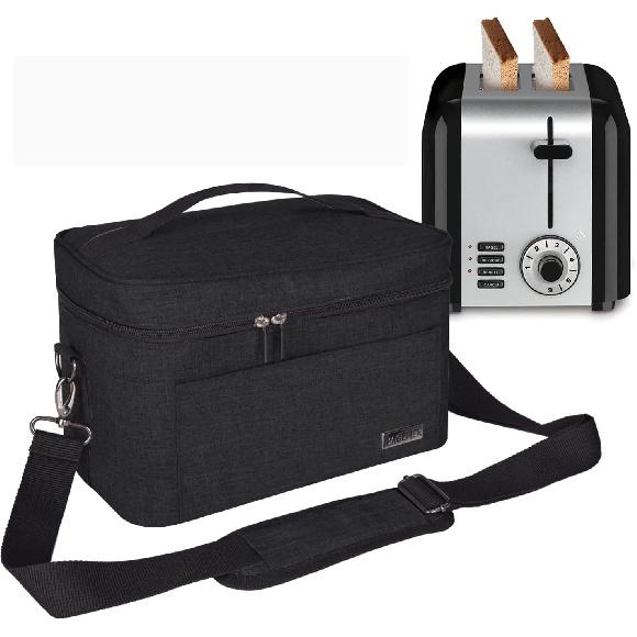✔COMPATIBILITY: The size of the portable storage bag for toaster is 12 inches (length) × 7 inches (width) × 7.5 inches (height), which is suitable for most 2-slice toasters, such as AmazonBasics, Cuisinart CPT-160, Cuisinart CPT-160BKS and KEEMO. Please confirm and measure your machine size before ordering.