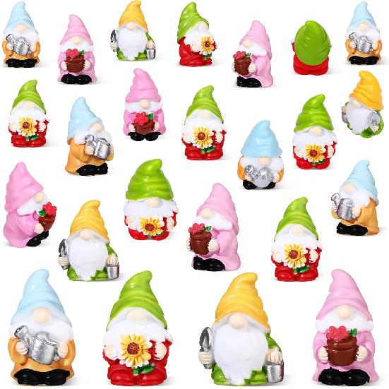 Measuring around 0.79 inch, they come in 4 styles, each style for 10 pieces, The gnome has elements such as sunflower and bucket in their hands, enhancing the aesthetic of your surroundings