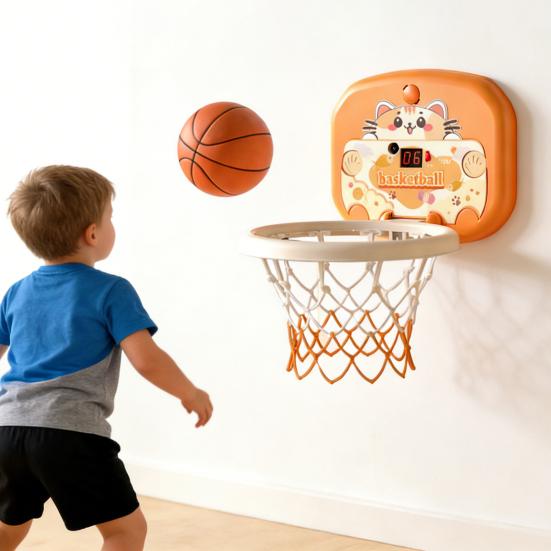 Indoor Mini Basketball Hoop Toy with LED Scoreboard Adjustable Height Wall Mount Basketball Shoot Game Toddlers Cartoon Animal Basketball Hoop Toy
