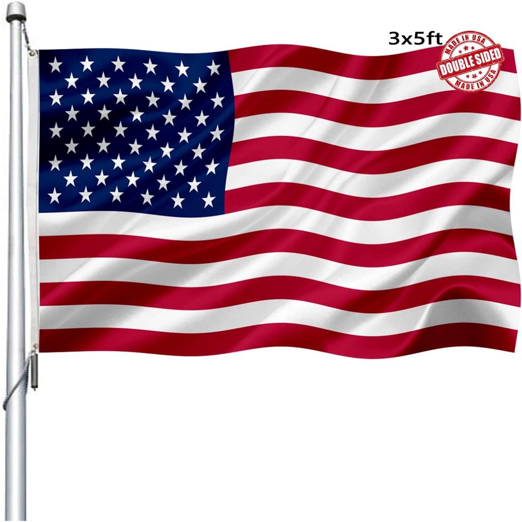 American Flags for Outside 3x5 Double Sided- Premium Heavy Duty Durable 3ply Large USA/US Patriotic Flag Made in USA High Wind for Boat Decorations