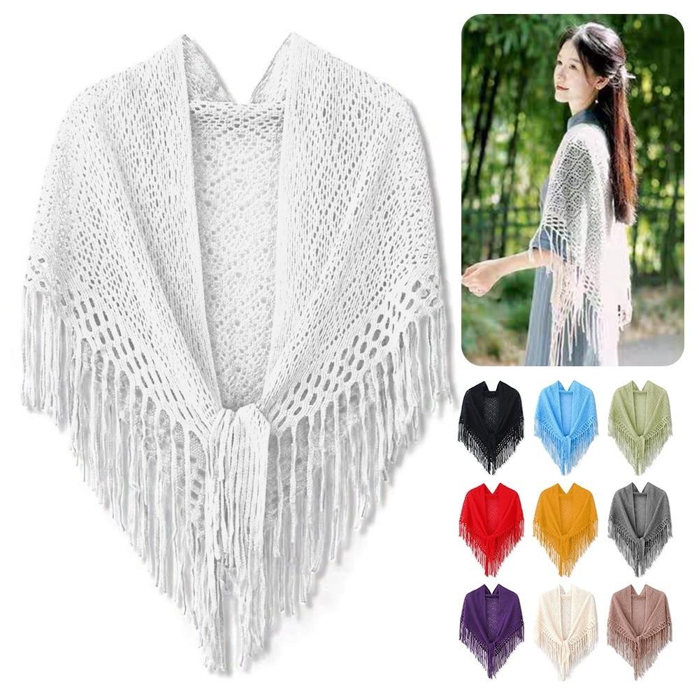 Retro Knitted Shawls Solid Color Women Shawls Casual Tassels Shawls for Women