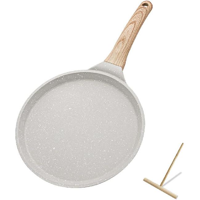 SAFE & NON-STICK CREPE PAN: The crepe pan has nonstick marble stone coating which is harmless 100% PFOA & PTFE Free, safe to use, very easy to clean with water after cooking. Just use a soft sponge or cloth to remove oil stains easily.