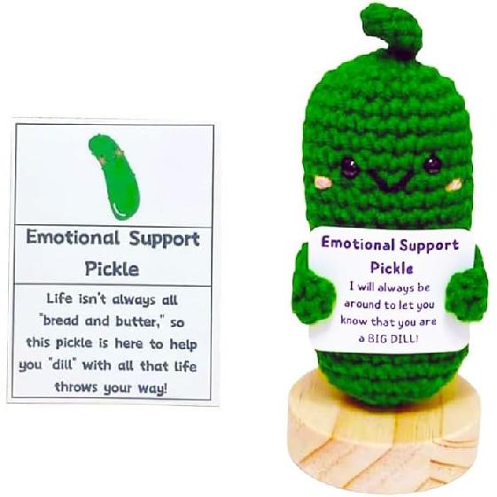 Emotional Support Pickle, Encouraged Crochet Pickle Cucumber Gift,Cheer Up Gifts for Friends or Family Festival Decoration Encouragement