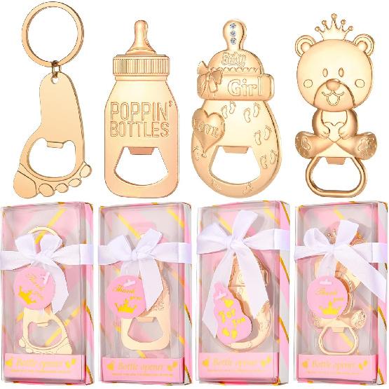 Exquisite Packaging : Our baby shower gifts for guests include 24 carefully designed bottle openers, including 6 bears bottle openers, 6 girls bottle openrs, 6 Popping bottle openrs and 6 foot-keychain bottle opening, these creative bottle openers are cute and practical, making it an excellent supplement to any party or gender matching.