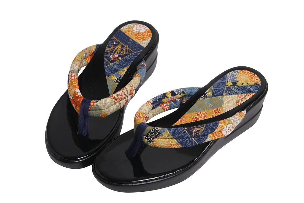 Hasegawa sandals with comfortable urethane perfect for everyday wear or Made in Navy size Japanese-patterned soles, yukata. Japan. blue, M.