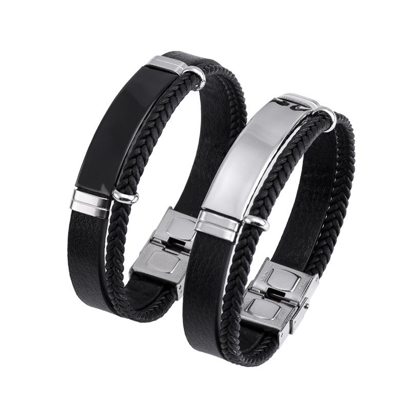 Punk Custom Double Layer Leather Bracelet Men Logo Name Engrave Luxury Handmade Women Rope Id Bracelets Jewelry
