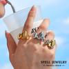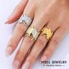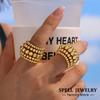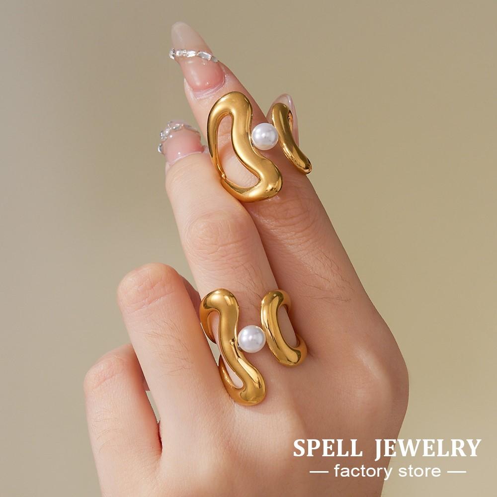 Daily Wear Statement Rings In Stainless Steel 18K Gold Plated Geometric Line Aesthetics Ring With Imitation Pearl For Women