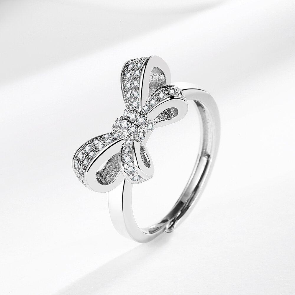 2026 Bow Ring Women's Light Luxury Full Diamond High-end Sense Opening Girlfriend Index Finger Ring Niche Design Ring