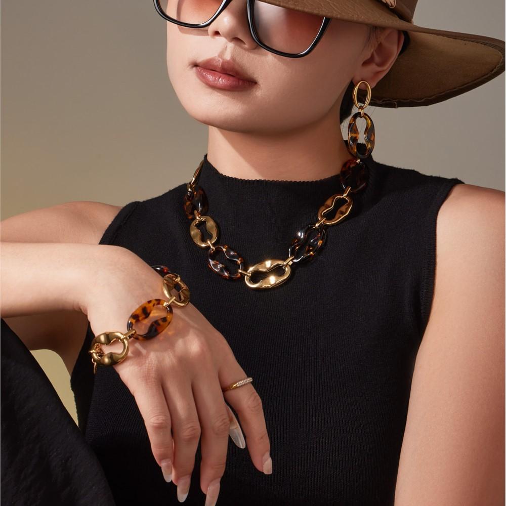 Chunky Link Chain Necklace Bracelet Drop Earrings for Women 18k Gold Plated Stainless Steel Necklaces Bracelets Dangle Earring