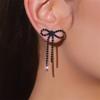Sweet Rhinestone Crystal Long Tassel Drop Earrings for Women Girls Hollow Bowknot Crystal Dangle Earrings Party Xmas Jewelry